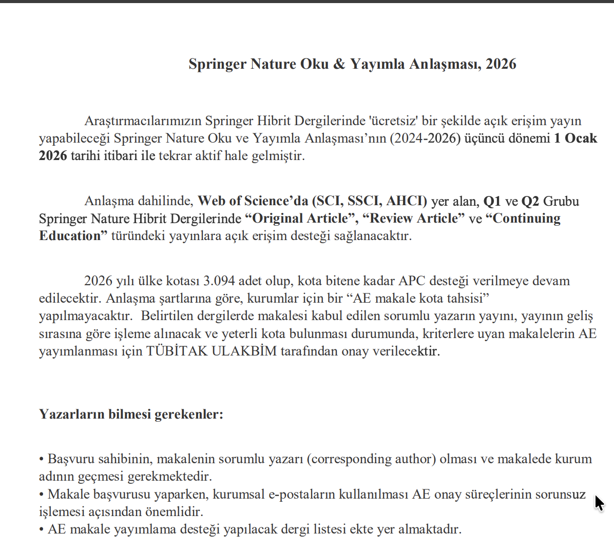 Üniversitemizin 'Read and Publish/Oku ve Yayınla' anlaşmaları hakkında